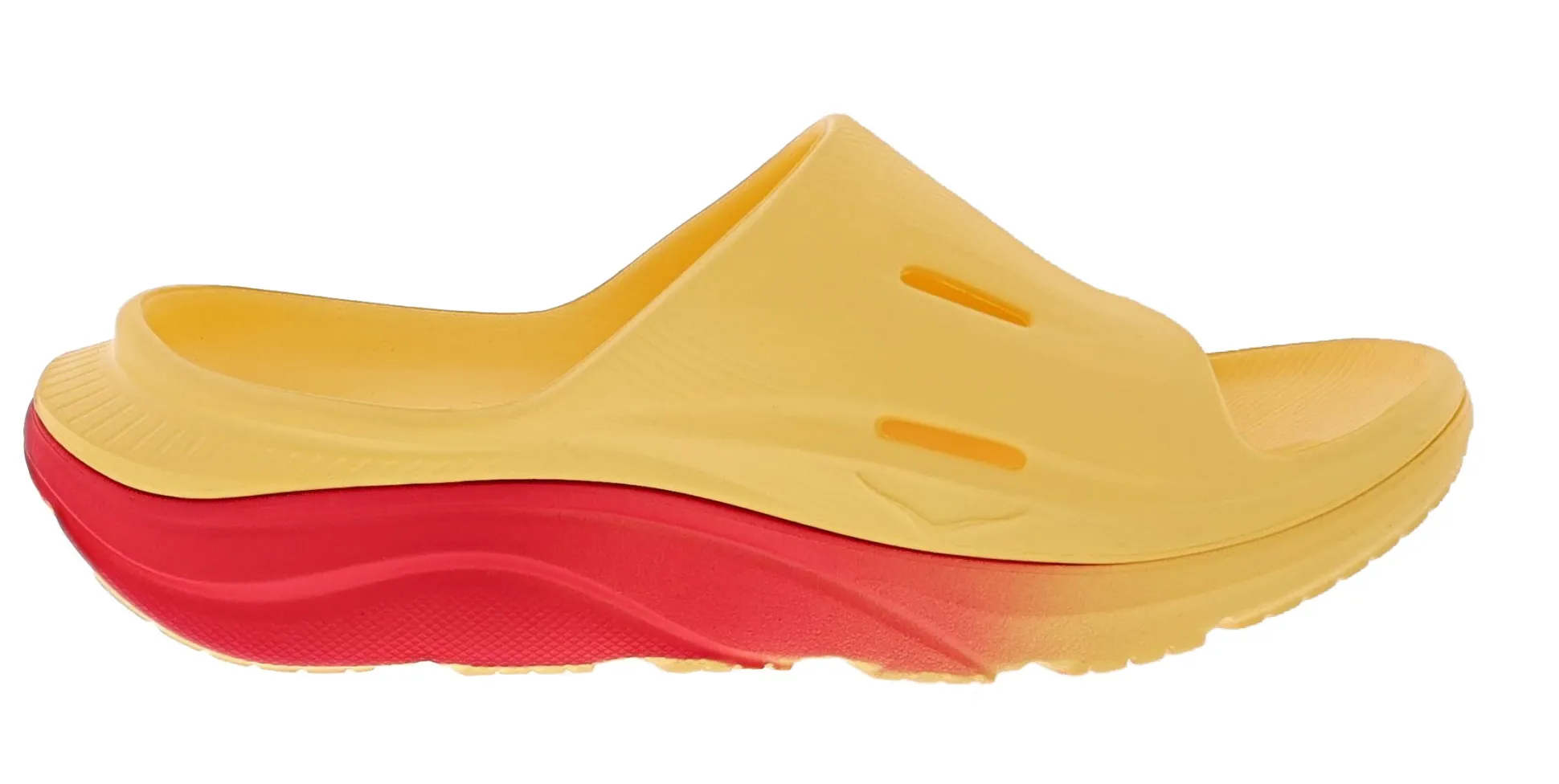 The Ora Recovery Slide 3 features a higher bed of soft cushion, designed to provide a forgiving impact and ride. The Ora Recovery Slide 3 contains features that make the shoe inherently stable, such as a wide base and our Active Foot Frame, for a moderate amount of stability that is still designed to work for neutral gaits.