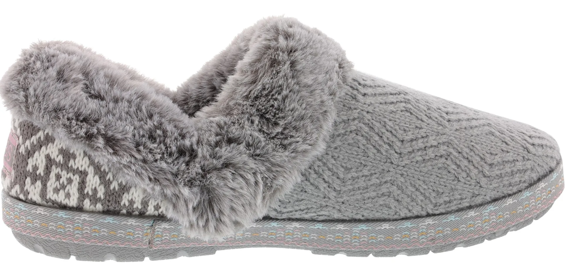 Skechers Bobs Too Cozy slippers Laid-back cozy style and warm comfort combine in BOBS from Skechers Too Cozy – Deco Drifter. These Bobs Skechers women slipper features a sweater knit upper with a geo pattern, faux-fur trim and lining. Women’s Skechers Bobs slippers offers a cushioned Skechers Memory Foam footbed.
