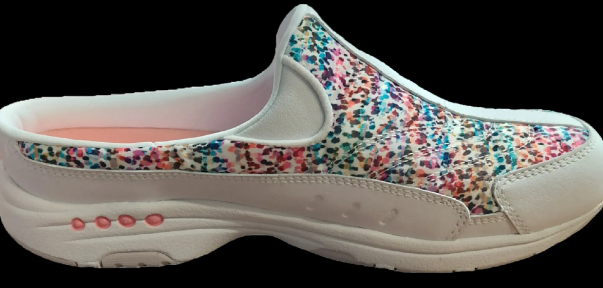 Our Traveltime clogs are perfect for walking and light activity. These comfort shoes are easy to slip on and off, plus their removable sock liners absorb shock and provide superior arch support for comfort all-day, into-the-evening. Traveltime is one of Easy Spirit’s most loved clogs for women.